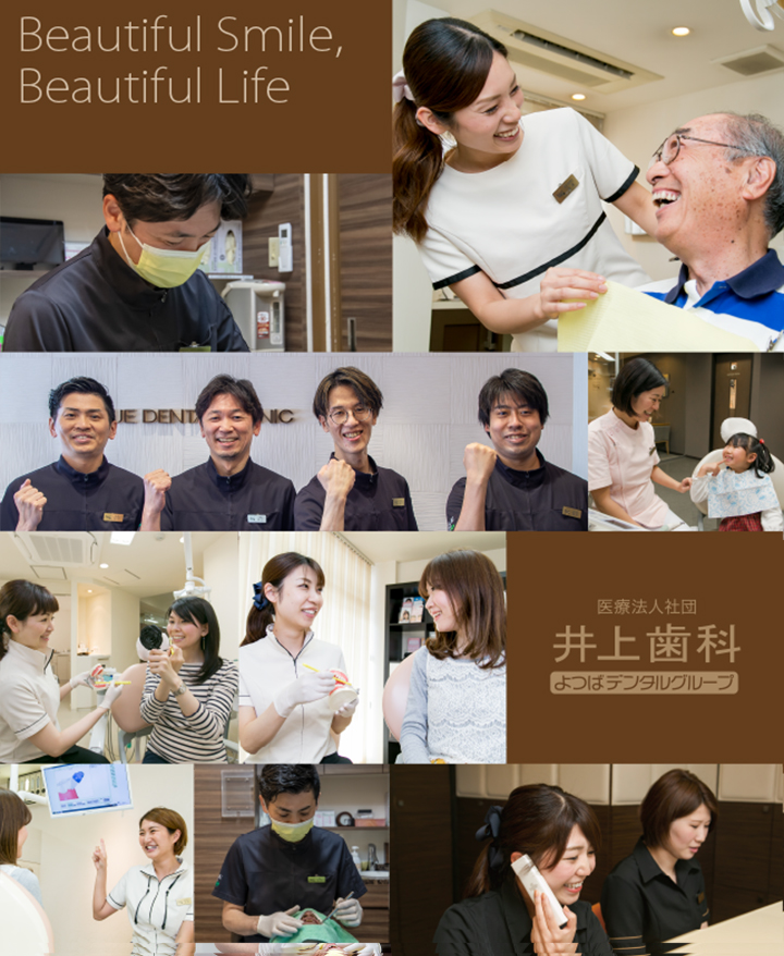 井上歯科は、高度な治療技術を希求し、予防歯科を通じて、患者さまが一生涯、安心して通い続けることのできる「ありがとう」と笑顔があふれる清潔な歯科医院であり、全従業員の物心両面の幸福を追求します。